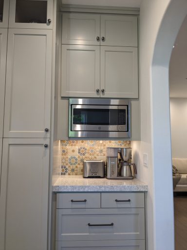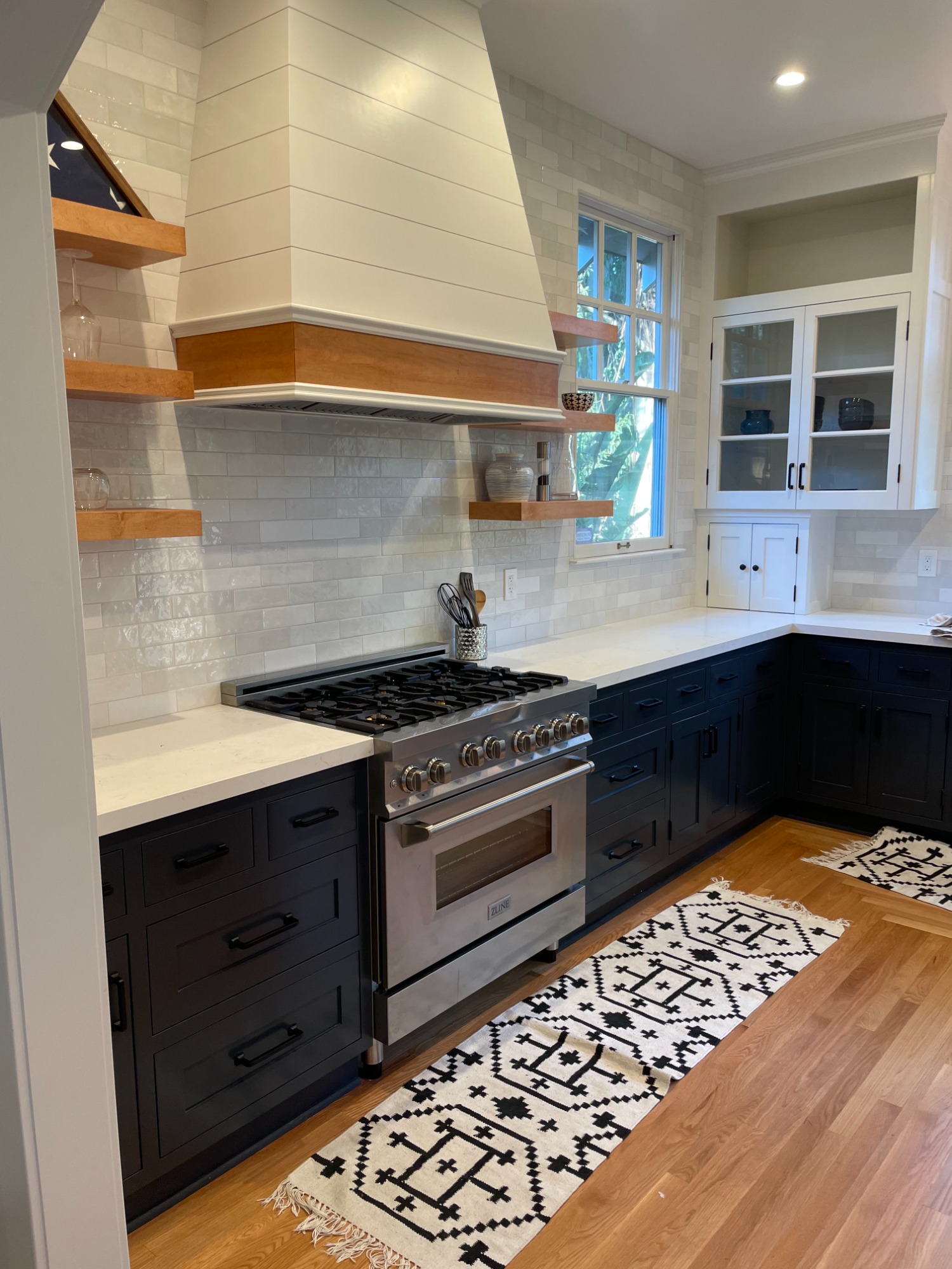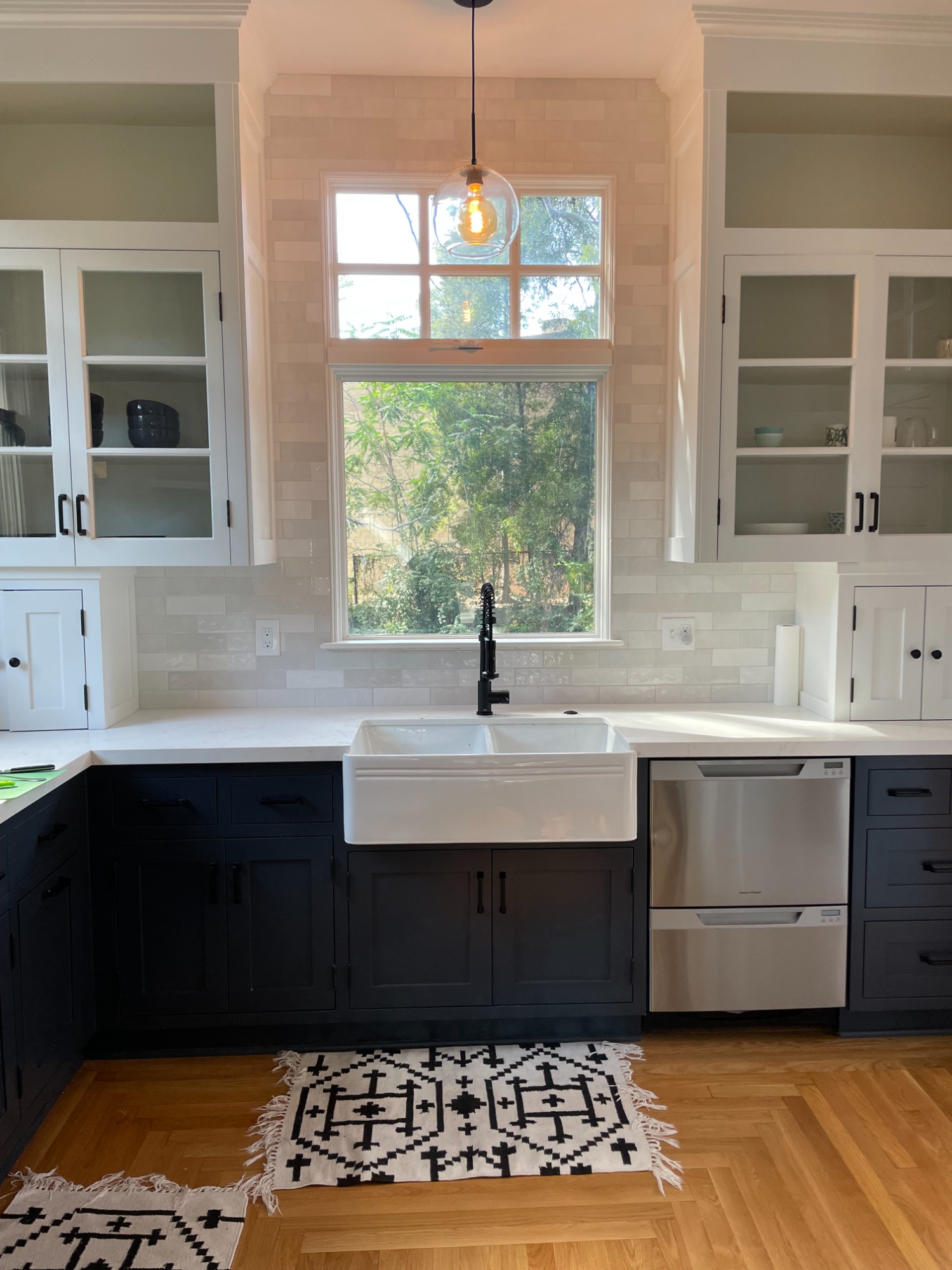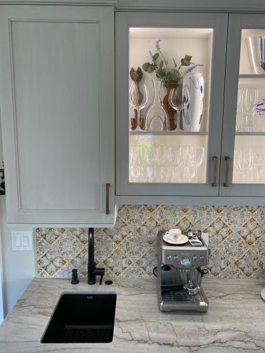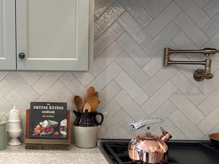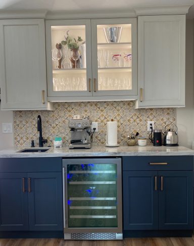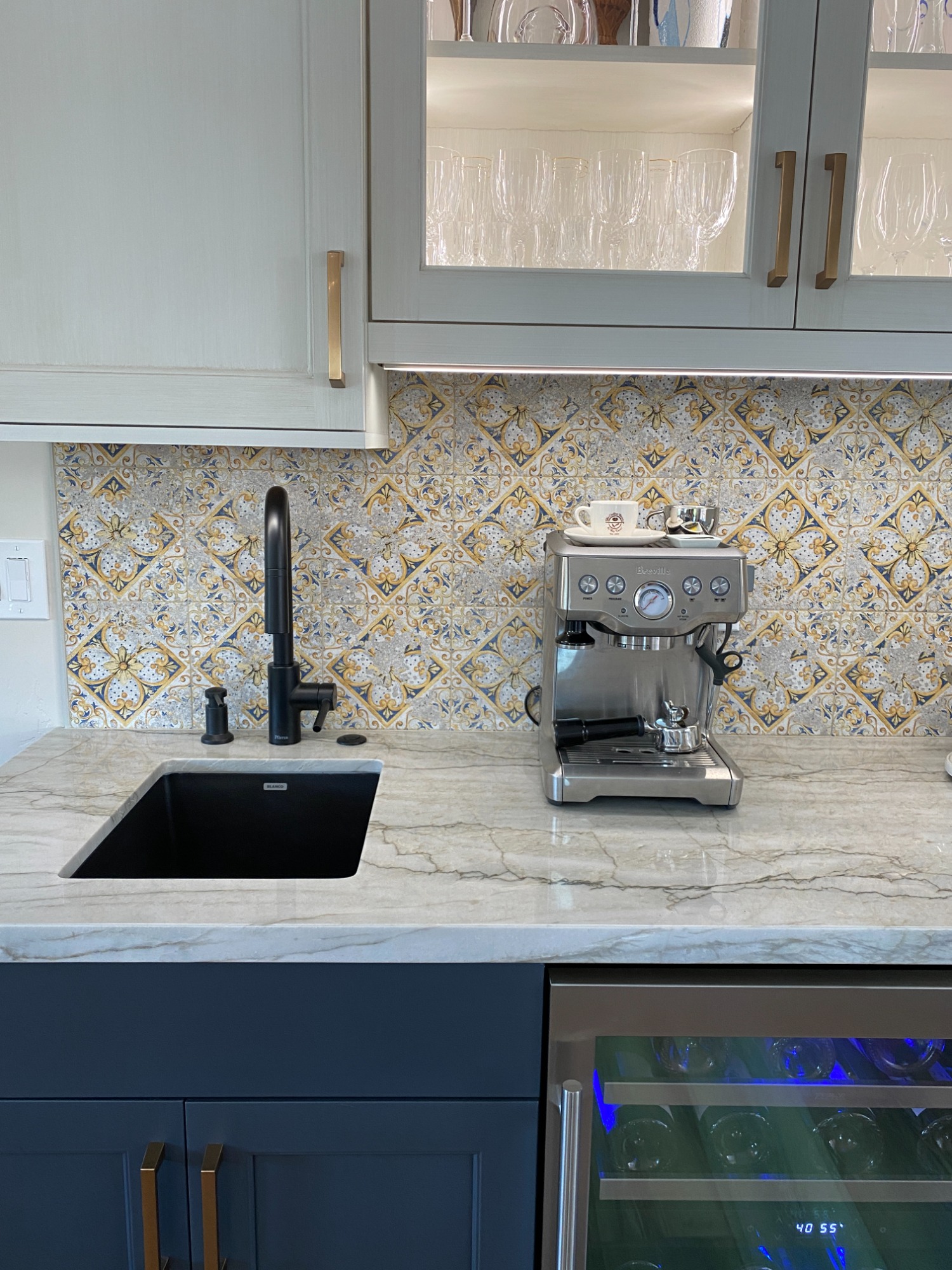 Love a fun patterned tile with white cabinetry.